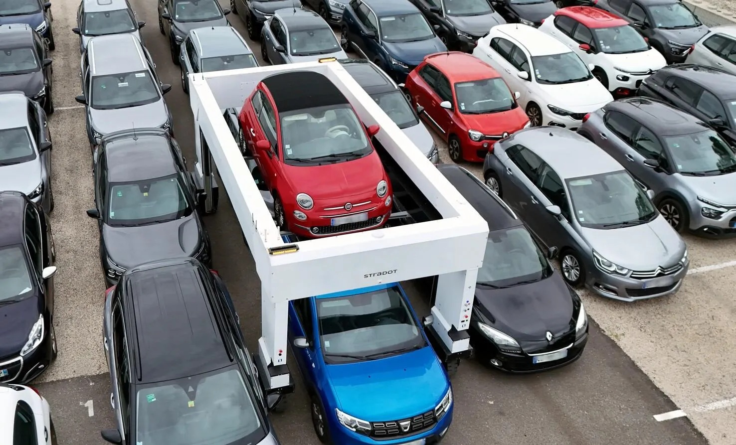 Co warto podkreślić, roboty transportowe STRADOT wyróżniają się unikalną zdolnością do podnoszenia pojazdów przeznaczonych do przemieszczenia oraz poruszania się wzdłuż już zaparkowanych samochodów, co umożliwi maksymalne wykorzystanie dostępnej przestrzeni. Takie rozwiązanie zwiększa zarówno pojemność placu składowego, jak i efektywność jego wykorzystania, ograniczając miejsca potrzebne do manewrowania i wyznaczania pasów ruchu.