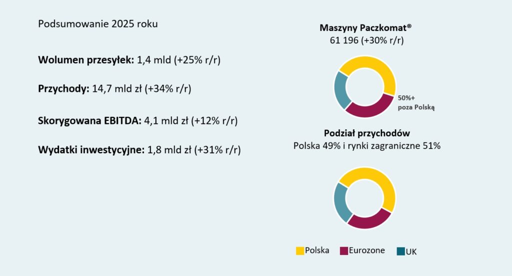Rok 2025 był dla InPost kolejnym okresem dynamicznego rozwoju. Osiągnęliśmy rekordowe wyniki zarówno pod względem wolumenu, jak i przychodów. Umocniliśmy pozycję lidera na europejskim rynku, jednocześnie integrując nowo przejęte spółki oraz kontynuując inwestycje w naszą sieć, technologię i działalność operacyjną. Nasze działania po raz kolejny potwierdzają siłę, skuteczność i odporność wdrożonego przez nas modelu dostaw out-of-home, który zdobył zaufanie milionów konsumentów i tysięcy sprzedawców.