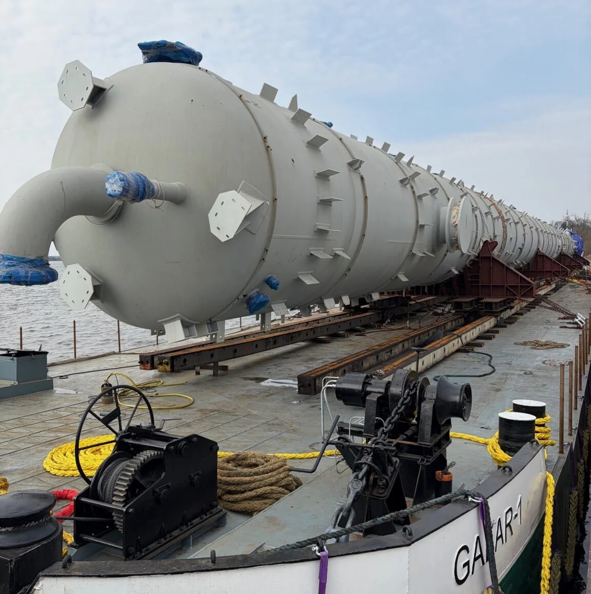 Po dotarciu barek do portu rzecznego w Płocku kolejnym etapem będzie ich rozładunek z wykorzystaniem siłowników hydraulicznych. Kolumny zostaną przeniesione na specjalistyczne, wieloosiowe platformy SPMT i po przygotowaniu dróg do transportu wielkogabarytowego w Płocku, wyruszą drogą lądową do miejsca docelowego, terenu inwestycji petrochemicznej ORLENU.