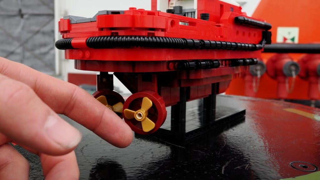 Model Lego jest nie tylko realistyczny, ale i funkcjonalny. Eryk starał się jak najwierniej odtworzyć jego konstrukcję i wyposażenie. Podobnie jak w rzeczywistości, pędniki azymutalne modelu obracają się niezależnie o 360 stopni, co jest jedną z jego kluczowych cech. Statek jest również wyposażony w odbojnice, które chronią holownik i statki asystujące przed uszkodzeniami podczas operacji. Podwójne odbojnice na dziobie umożliwiają efektywne pchanie, co jest jednym z najważniejszych zadań podczas manewrów portowych.