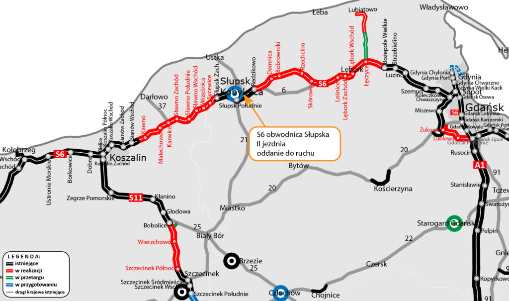 Kontynuowane są prace na pozostałych czterech odcinkach S6 o długości ponad 60 km. Kolejne fragmenty nowo budowanej drogi ekspresowej to: Słupsk – Bobrowniki, Bobrowniki – Skórowo, Skórowo – Leśnice i Leśnice – Bożepole Wielkie. GDDKiA szacuje, że roboty na całej trasie zakończą się w pierwszej połowie 2026 r. Docelowo S6 połączy Trójmiasto ze Szczecinem.
