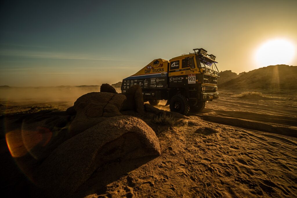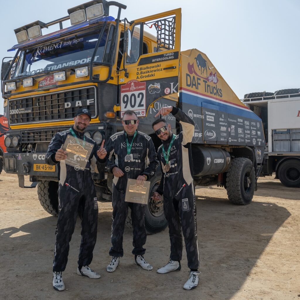 W przeciwieństwie do „dużego” Dakaru, w klasycznej odsłonie rajdowego maratonu o zwycięstwie nie decyduje wyłącznie najwyższa prędkość, lecz precyzyjne utrzymanie narzuconego tempa, skuteczna nawigacja i bezbłędna realizacja zadań na każdym etapie. Właśnie w takim formacie Kamena Rally Team sięgnął po zwycięstwo, jadąc samochodem o wyjątkowym dakarowym rodowodzie – DAF-em 3300.