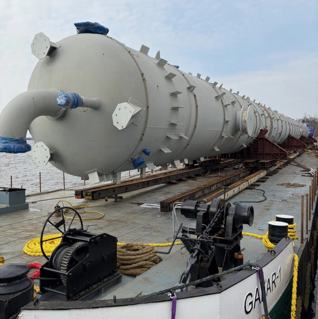 Kolumny dla ORLEN-u przypłynęły Wisłą do Płocka [ZDJĘCIA]